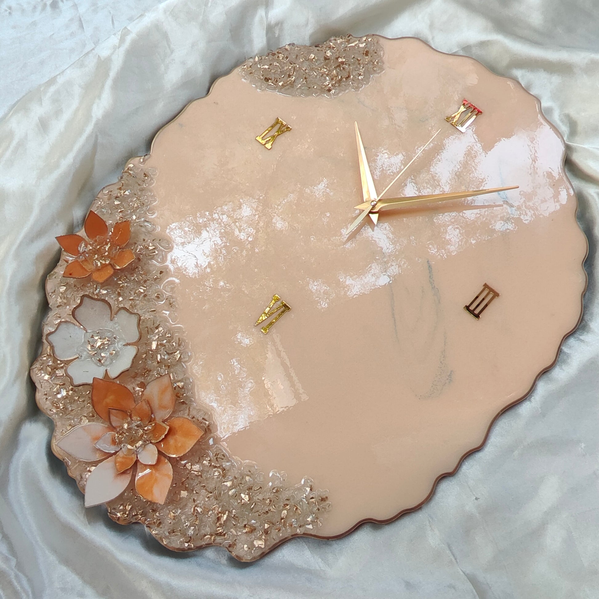 Peach Petal Élan Resin Wall Clock – Crystal Bloom Edition