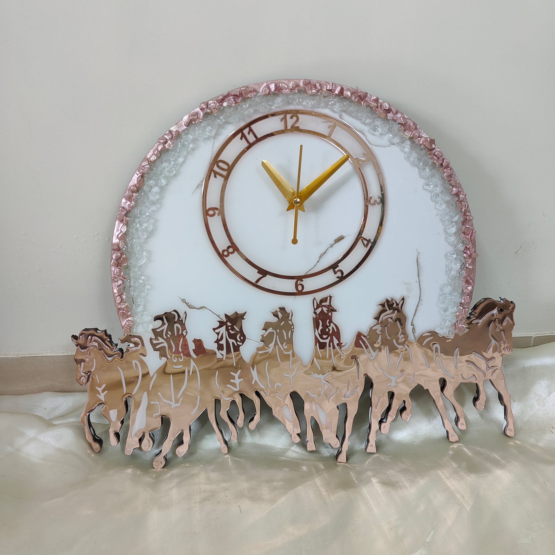 Elevate your space with timeless charm and prosperity through this stunning Seven Horses Resin Wall Clock. Handcrafted with artistic precision, this masterpiece beautifully merges luxury design with spiritual symbolism.